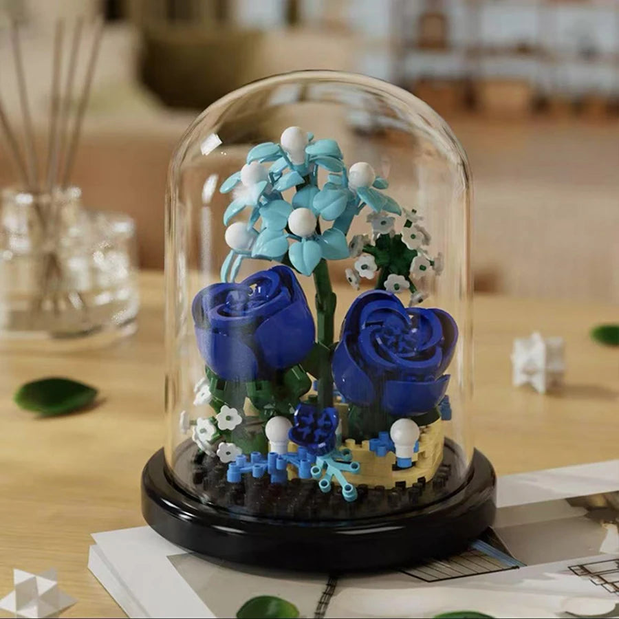 Este conjunto detalhado combina a alegria de construir com a beleza atemporal de uma flor que nunca murcha.