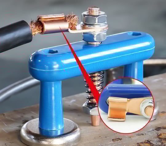 Configure uma braçadeira de aterramento para trabalhos de soldagem em qualquer lugar em segundos.